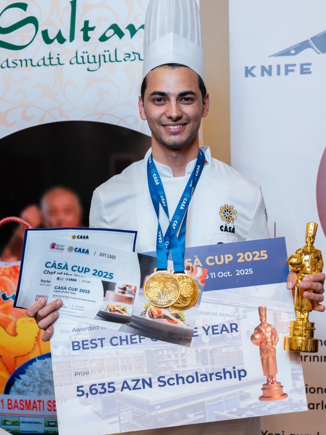 Bakı Turizm Peşə Məktəbinin ötən ilki məzunu, aşpaz ixtisası üzrə təhsil almış Seymur Məhərrəmov “Casa Cup 2025” kulinariya yarışmasında üç nominasiyada qalib olub.